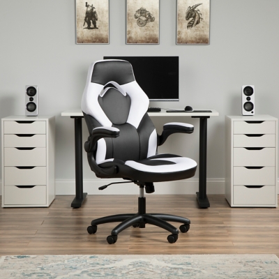 Its additional swivel/tilt control is manipulated with tension adjustment. Get a great gaming chair for less so you can spend more money on the ofm essentials collection racing style leather gaming chair now in nine difficult colors so your gaming chair and the game are yours. This gaming chair has adjustable arm height, a folding base. Ofm essentials collection racing style bonded leather gaming chair, in blue (ess.